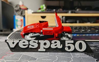 Scritta "Vespa 50" non colorata o verniciata, quindi, non deteriora nel tempo come altre riproduzioni Circa 16 cm x 2,1 cm.