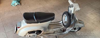 Vespa originale al 100%, telaio e carrozzeria con patina autentica del tempo, mai restaurata con verniciature moderne: segni d'uso onesti, niente ruggine perforante o interventi improvvisati. Telaio solido, scudo e fiancatine senza deformazioni importanti. Documenti: libretto originale, passaggi regolari, omologata 50cc