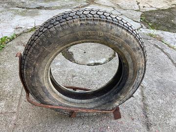Vendo supporto ruota di scorta centrale ( montata su Vespa GS 150 ) il particolare è della fine anni 50 di uno dei tanti fornitori di accessori dell epoca. Manca la cinghia e il gancio ed é da sabbiare la gomma é solo dimostrativa . Euro 50