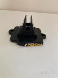 Pacco lamellare Vforce3 by Moto tassinari con lamelle in VERO CARBONIO, pacco 8 petali bicuspide compatibile con Minarelli Orizzontale quindi F10 F12 F15 Aerox Scarabeo nitro ovetto neis beta ark aprilia rally ecc Simile ad altre valvole lamellari come VL12 VI14 Monopetalo polini malossi stage 6 top vforce v force