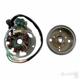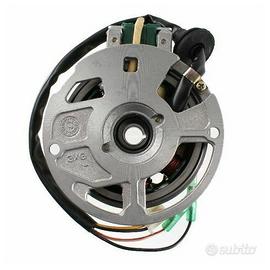 (R.5043) Vendo rotore generatore nuovo per motore Yamaha e Minarelli con spina plastica con tre fili bianco - nero - giallo /rosso e due fili sciolti uno rosso/nero e uno bianco/rosso per scooter 50 come Aprilia Area 51 - Aprilia Scarabeo - Mbk Ovetto con codice 163585 , per applicazioni vedere foto