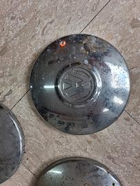 vendo 3 borchie copriroute per volkswagen vw d'epoca Maggiolino Maggiolone bully bus trovati in garage e da ripulire, come da foto. Posso spedire