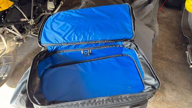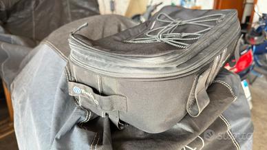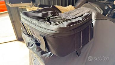 Borsa supplementare della winderlich da utilizzare sopra le borse laterali o il topcase. Espandibile, con cerniere impermeabili. Sul fondo sono stati praticati 2 fori per fissarla sul portapacchi della moto dove l’ho utilizzata