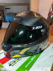Vendo per cambio tipologia moto, bellissimo X-lite X-803 RS Ultra Carbon nell'esclusiva colorazione Golden Edition (Carbonio a vista con dettagli oro). Il casco è il top di gamma racing in fibra di carbonio, estremamente leggero e aerodinamico. Dettagli e Condizioni: • Taglia: M. • Condizioni: Ottime, calotta immacolata, interni igienizzati regolarmente. • Sicurezza: Chiusura a doppia D (pista), sistema NERS (rimozione rapida guanciali). Accessori Inclusi (Valore oltre 100€): • Visiera Dark (Fumé): Già montata (come da foto). • Visiera Trasparente: Nuova, mai montata, ancora nella pellicola protettiva originale. • Spoiler Posteriore (RAS): Racetrack Aerodynamic Spoiler montato. • Kit Accessori Originali: Tutti gli inserti, paranaso e sottogola originali ancora incartati. • Scatola Originale e Sacca: Inclusi. Il casco è stato usato con cura e non ha mai subito urti o cadute. Perfetto per chi cerca un casco professionale, leggerissimo e dal look unico.