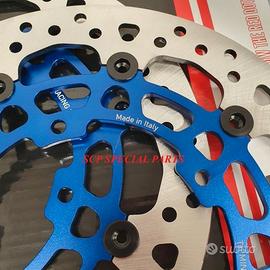 Dischi freno RM2 racing specifici per: · FZ1 1000 06-15 · FZ1 Fazer 1000 06-15 · MT-10 · MT-10 SP · MT-10 Tourer · V-MAX 1700 09- · YZF-R1 04-06 · YZF-R1 15-19 · YZF-R1 20 > · YZF-R1M 15-19 · YZF-R1M 20 > · YZF-R6 17 > - i dischi sono full flottanti quindi garantiscono un perfetto accoppiamento con la pastiglia freno per una frenata immediata senza ritardi ed efficace - spessore 5,5mm che previene il fastidioso fenomeno di fading, ovvero quanto all'aumentare delle temperature dei dischi e il conseguente aumento della temperatura di tutto l impianto frenante la pompa freno diventa spugnosa e si "allunga" la corsa della stessa - 300 grammi circa la coppia piu leggeri dei dischi brembo, a tutto beneficio della maneggevolezza dell'avantreno della moto - mozzo in lega alleggerita anodizzata blu ufficiale Yamaha oppure nero - pista frenante racing con speciale lavorazione a cuspide per un perfetto utilizzo della pastiglia freno