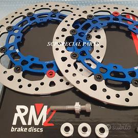 Dischi freno RM2 racing per upgrade a 320mm di moltissimi modelli Yamaha: - la maggiorazione del diametro disco freno offre un'importante miglioramento della frenata - i dischi sono full flottanti quindi garantiscono un perfetto accoppiamento con la pastiglia freno per una frenata immediata senza ritardi ed efficace - spessore 5,5mm che previene il fastidioso fenomeno di fading, ovvero quanto all'aumentare delle temperature dei dischi e il conseguente aumento della temperatura di tutto l impianto frenante la pompa freno diventa spugnosa e si "allunga" la corsa della stessa - diametro 320mm, upgrade di maggiorazione da 10 a 20 mm in piu a seconda dei modelli di moto. - 360 grammi la coppia piu leggeri dei dischi brembo, a tutto beneficio della maneggevolezza dell'avantreno della moto - mozzo in lega alleggerita anodizzata blu ufficiale Yamaha - pista frenante racing con speciale lavorazione a cuspide per un perfetto utilizzo della pastiglia freno il kit dischi costituisce upgrade a 320mm per tutti i modelli indicati. Nel kit vengono forniti anche i perni e distanziali per le pinze specifici per l'upgrade a 320 mm ricavati dal pieno e possono essere anodizzati di qualsiasi colore su richiesta. DISCHI RM2 UPGRADE A 320mm per: · YZF-R1 07-08 · YZF-R1 09-11 · YZF-R1 12-14 · YZF-R6 05 · YZF-R6 06-07 · YZF-R6 08-09 · YZF-R6 10-16 · MT-09 14-16 · MT-09 14-16 ABS · MT-09 17-20 · MT-09 21- · MT-09 SP 18-20 · MT-09 SP 21- · TMAX 530 15-16 · TMAX 530 17-19 · TMAX 560 20-21 · TMAX 560 Tech Max 560 20-21 · Tracer 9 · Tracer 9 GT · Tracer 900 15-17 · Tracer 900 18-20 · Tracer 900 GT 18-2