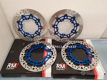 Dischi freno RM2 racing specifici per: · FZ1 1000 06-15 · FZ1 Fazer 1000 06-15 · MT-10 · MT-10 SP · MT-10 Tourer · V-MAX 1700 09- · YZF-R1 04-06 · YZF-R1 15-19 · YZF-R1 20 > · YZF-R1M 15-19 · YZF-R1M 20 > · YZF-R6 17 > - i dischi sono full flottanti quindi garantiscono un perfetto accoppiamento con la pastiglia freno per una frenata immediata senza ritardi ed efficace - spessore 5,5mm che previene il fastidioso fenomeno di fading, ovvero quanto all'aumentare delle temperature dei dischi e il conseguente aumento della temperatura di tutto l impianto frenante la pompa freno diventa spugnosa e si "allunga" la corsa della stessa - 350 grammi la coppia piu leggeri dei dischi brembo, a tutto beneficio della maneggevolezza dell'avantreno della moto - mozzo in lega alleggerita anodizzata blu ufficiale Yamaha - pista frenante racing con speciale lavorazione a cuspide per un perfetto utilizzo della pastiglia freno
