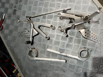 Vendo pedane originali e semi manubri per Yamaha r1 2003 pedane perfette invece un semi manubrio è leggermente danneggiato come si può vedere in foto.