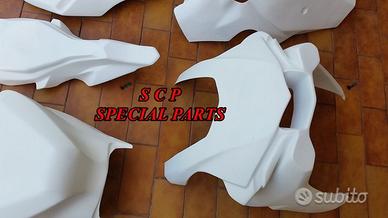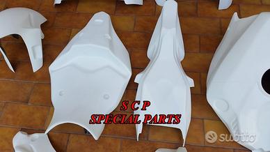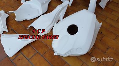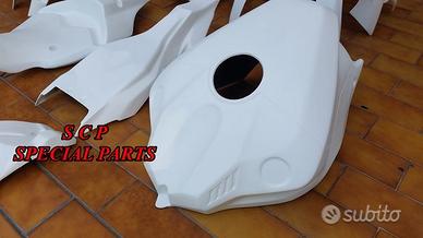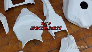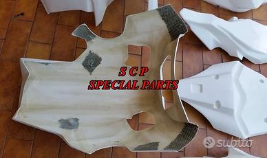 Carene moto in versione racing, realizzate interamente in aviofibra e rinforzate nei punti piu di ancoraggio e soggetti a stress e carico . DISPONIBILI PER TUTTI I MODELLI DI MOTO PRESENTIAMO CARENE YAMAHA R1 2015-2020 kit completo realizzato in aviofibra leggerissima e rinforzata in kevlar in tutti i punti soggetti a carico. Il particolare materiale costruttivo rende la carene molto leggera e flessibile, di facile montaggio. Le superfici sono mente rifinite e ciò facilita il processo di verniciatura. Kit costitutito da: musetto, fiancate, vasca, codone, sotto codone, cover serbatoio e parafango.