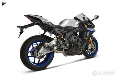 Termignoni amplia la sua gamma di slip on racing compatibili per Yamaha R1 con l’apposito de-cat costruito in acciaio Inox.