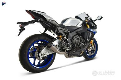 Termignoni amplia la sua gamma di slip on racing compatibili per Yamaha R1 con l’apposito de-cat costruito in acciaio Inox.