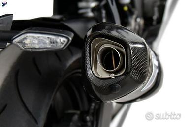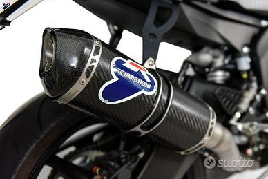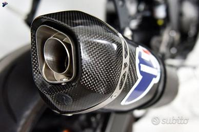 SISTEMA COMPLETO Termignoni presenta lo SCARICO COMPLETO RACING dedicato a YAMAHA R6 (Anno 2006-2019) codice: Y11810200TTC NON OMOLOGATO. Esso è realizzato tutto in titanio e silenziatore in carbonio. Il terminale è corredato dallo storico logo metallico Lo scarico completo pesa 4600 gr contro i 11200 gr dello scarico di serie, con un risparmio di peso di 6600 gr. Ricordiamo che il sistema completo racing non è compatibile con il porta targa, frecce originali e pedana passeggero. Dal momento dell'installazione dell'impianto, le pedane passeggero dovranno essere rimosse. L'impianto è compatibile solo con le pedane pilota.