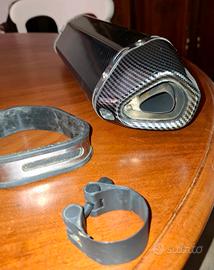 Marmitta con adesivo Akra, rivestita in carbonio più raccordo specifico per TT 350. Minuteria compresa. Pronto montaggio