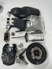 Vendo ricambi Yamaha x-max 125 del 2008 dispongo di molti ricambi in ottimo stato, tra cui: forcelle, cerchio anteriore, cerchio posteriore, carena scudo anteriore, farò anteriore, contakm, retroscudo, sottopedana, fascioni laterali, fianchetti posteriori, fari posteriori, rinvio contakm, regolatore di tensione, vaschetta liquido refrigerante, sottosella, parafango porta targa posteriore, copri batteria, carene manubrio, pedana, kit chiavi completo, scudino anteriore, specchietti, maniglione posteriori, serbatoio, pompa benzina, tappetini, frizione, variatore, scatola filtro, motorino avviamento, cavalletto centrale ecc. per informazioni e foto migliori 3272929610 mauro prezzi da concordare al telefono