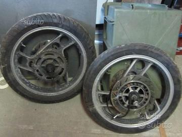 Coppia di ruote, ant. 18 x 2.15 - post. 18 x 2.50 , complete di tutto, perni, registi, rinvio ,ecc.ecc. in buone condizioni, unico problema che