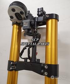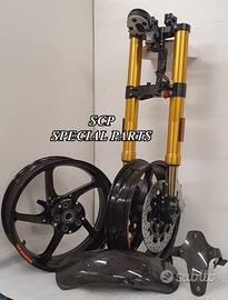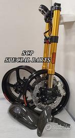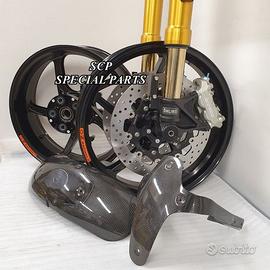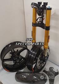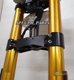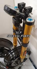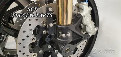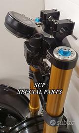 PROTOTIPIAMO E REALIZZIAMO AVANTRENI SPECIALI PER QUALSIASI MOTO. OGNI AVANTRENO E' REALIZZATO SPECIFICO SU MISURA. SICUREZZA, PERFORMANCE, ESCLUSIVITA' AL TOP!!! LA FINALITA' DI TALI PROGETTI E' RENDERE UNICA LA VOSTRA MOTO QUALUNQUE ESSA SIA. PRESENTIAMO AVANTRENO COMPLETO PER YAMAHA XJR 1300 E 1200 CON FORCELLE OHLINS NIX 30 CON STELO DA 48mm E FODERO DA 58mm, PIASTRE DI STERZO SU MISURA RICAVATE DAL PIENO CON RISER, PIEDINI FORCELLE RADIALI , DISCHI E PINZE BREMBO RADIALI, COPPIA CERCHI FORGIATI OZ RACING E PARAFANGO CARBONIO. IL KIT E' PLUG AND PLAY! SPECIFICO! SI MONTA SENZA NESSUNA MODIFICA! DISPONIBILE ANCHE PER MANTENERE CERCHIO ORIGINALE XJR e QUADRO STRUMENTI XJR. Kit costituito da: Forcelle OHLINS allestite SPECIFICATAMENTE. Le forcelle sono corredate da piedini radiali e il kit è completo di impianto frenante radiale BREMBO, piastre di sterzo speciali ricavate dal pieno. Riser ricavati dal pieno con altezza standard regolabili nel diametro e nella altezza. Staffe parafango ricavate dal pieno con parafango in carbonio e coppia cerchi oz. Per il montaggio si utilizzano boccole e cuscinetti originali. Possiamo progettare e realizzare qualsiasi specifica atta a rendere unica tale tipologia di prodotto. Tutte le parti ricavate dal pieno possono essere progettate direttamente su specifiche tecniche ed estetiche del cliente e anodizzate di qualsiasi colore. Sulle piastre possiamo replicare attacchi e supporti originali per telaietto, quadro strumenti, blocco accensione, blocca sterzo, ammortizzatore di sterzo etc oppure possiamo farne su misura come in questo foto dove vedete installato un quado strumenti derivato dalla yamaha xsr 700 con staffa porta strumento su misura. Optional disponibili: cerchi a raggi su misura cerchi forgiati a razze Oz, Dymag, Pvm, dischi e pinze brembo attacchi e modifiche alle piastre e non solo su misura.