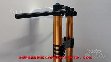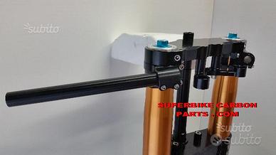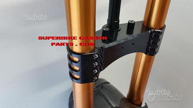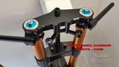 YAMAHA XJR (tutte le versioni): PIASTRE DI STERZO SPECIALI PER TRASFORMAZIONE CAFE RACER, RICAVATE DAL PIENO CON MACCHINARI A CONTROLLO NEMERICO, PROTOTIPATE PER FORCELLE STANDARD O OHLINS OPPURE MARZOCCHI O DI QUALSIASI ALTRA MARCA. Il kit piastre è costituito da piastra di sterzo inferiore con asse canotto e piastra di sterzo superiore. Semimanubri racing ricavati dal pieno su richiesta. Per il montaggio si utilizzano boccole e cuscinetti originali. Possiamo realizzare Cave di alleggerimento passanti sulla piastra inferiore e superiore. Un prodotto rivoluzionario per efficacia, risorse tecniche e costo contenuto. Possibilità di scegliere qualsiasi colore per l'anodizzazione. Le piastre di sterzo sono progettate appositamente per migliorare il feeling con l'avantreno eliminando il chattering rendendo la moto piu' stabile in inserimento curva e percorrenza. La lega speciale utilizzata (testata in pista nei principali campionati internazionali e non come fanno quasi tutti gli altri produttori senza know how sui campi gara!!) E' studiata appositamente per assorbire le sollecitazioni e permettere alle sospensioni di lavorare molto meglio. Off set standard oppure speciale regolabile a richiesta. Replichiamo attacchi quadro strumenti e blocca sterzo se presenti e su richiesta. Il cliente può scegliere qualsiasi tipologia e forma per il progetto delle piastre di sterzo entro i limiti imposti dalla quote della moto stessa, prendendo spunto dai nostri lavori precedentemente effettuati. ufficio vendite 3488506178 (orario continuato 8-18 dal lunedì al venerdi)
