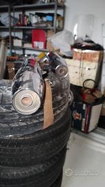 scarichi originali, in buone condizioni, no graffi, cromature senza scoloriture dovute al calore eccessivo. il kit comprende silenziatore anteriore, silenziatore posteriore e tubo posteriore. unica modifica : compensatore tagliato e saldato.