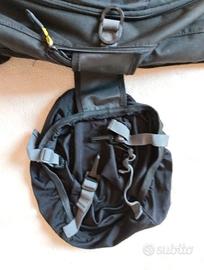 Nella sua parte inferiore è dotato di una rete capace di contenere il casco e nella parte superiore troviamo un piccolo scomparto nel quale è celata la protezione per la pioggia.