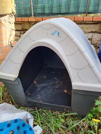 Cucce usate per taglie medie, setter e breton. Usate ma ancora buone, quella color mattone ha delle colature di tinta sul tetto, come si vede in ultima foto. 110 euro per tutti e 4.