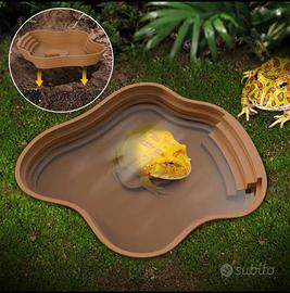 2 Ciotole acqua per anfibi e rettili, appositamente studiata per facilitare l'uscita e l'ingresso di piccoli giovani animali. € 15 per entrambe (2pz) Adatta anche a ricreare una zona acquatica in terrari bioattivi grazie alla forma a laghetto. Può essere usata anche per la somministrazione di cibo alle tartarughe, gechi, sauri, grilli, insetti Rana Pacman Pac-man Bambina orientalalis ululona tartaruga geco serpente anfibi salamandre snake.