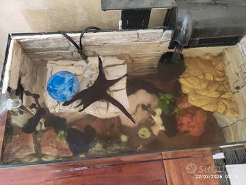 acquario 30 litri adatto per caridinaio , pesci di comunità, allevamento ancistrus o per tartarughe con 2 piani di appoggio. rivestimento in pietra , completo di motorino , riscaldatore , lampada luce bianca e blu , cannolicchi e spugne.