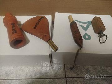 Set di antichi richiami per uccelli, ideali per collezionisti o appassionati.
