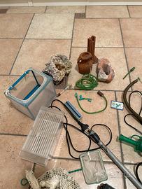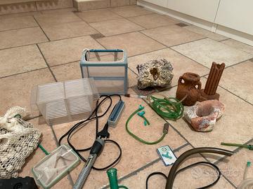 Accessori acquario dismesso da tempo. Gli accessori a luce,( provati funzionanti) gli altri in buonissime condizioni .