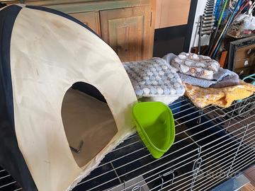 Vendo 2 gabbie misure 77x45 e 100x50 piu accessori (6 abbeveratoi, 2 casette e 1 tenda, 2 porta fieno, 3 ciotole, 3 amache, 1 tappetino e 1 trasportino) Non vendo separatamente Solo ritiro a mano
