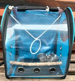 Gabbia con colonna separabile a rotelle ,trasportino e zainetto panoramico . No vendita separata degli articoli