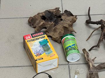 Vendo accessori per acquario, tutti quelli che si vedono nella prima foto: - pompa filtrante - vari legni e radici decorative - valvola Askoll per Co2 (manca solo la bombola) - pompa aria - altri accessori Il tutto era utilizzato in un acquario smontato circa 10 anni fa. Spedizione o ritiro a mano.