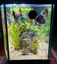 Acquario Vision Juvell. Cm 150, larghezza minima 40 cm massima 62, altezza 63 cm. Vendo così come in fotografia completo di tutto: pesci, piantre, tronchi e tecnica