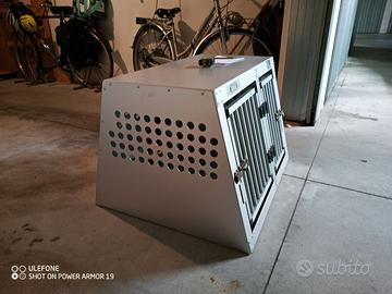 Trasportino per cani, usato (pari al nuovo), per cani doppio/singolo della STARKER HUND, interamente in alluminio, divisibile con apposita paratia, ospitava un Amstaff maschio, vendo causa inutilizzo, Euro 450,00.