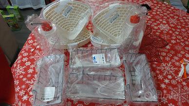 Stock accessori per coniglio: 4 WC forma triangolare 2 biberon grandi 4 cestini per il fieno Tutti gli accessori sono nuovi e mai utilizzati.