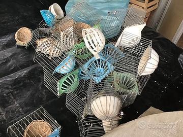 Per cessato allevamento cedo parecchio materiale per allevare canarini, esotici pappagalli ecc. tra cui nidi di diversa tipologia, mangiatoie per pastoncino, uovo e granaglie, beverini e altro, tutto quello in foto, la maggior parte del materiale è usato ma ben tenuto. Prezzo di realizzo…..Preferibile visione di persona.