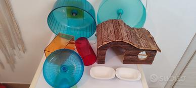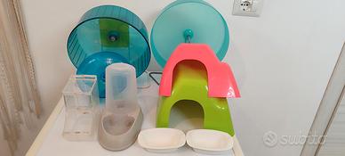 Ruote, Case, Beverini, Dispenser croccantini, Ciotole, Giochi vari (5€ al pezzo) Tappeti termici regolabili + Termostato digitale gestione tramite display/App. (15€ al pezzo) Prezzi trattabili