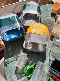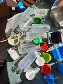 vendo tutti questi accessori per cocorite, canarini ecc ecc , varie mangiatoie, abbeveratoi, bagnetti e anche gabbie da 100 e da 90 più una mini minivoliera a prezzo super conveniente.