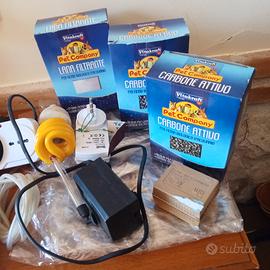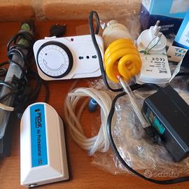 vendesi vari accessori: termostati. riscaldatore pompa dell"acqua. temporizzatori carbone attivo lana filtrante pulitore vetri e lampada gialla per acquario tutto funzionante visibile sia a Roma che a Nettuno