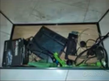 Coperchio, filtro, riscaldatore, luci, pompa d'acqua, termometro, arredamento decorativo e accessori per la manutenzione.