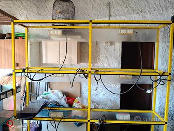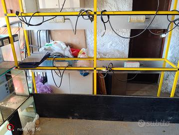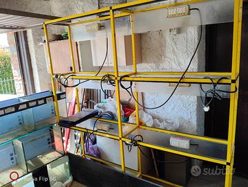 vendo batteria di acquari da negozio 2metri per 2 completa di pompe,luci, termostati. smontata a gennaio 2025 causa chiusura negozio. sono 6 acquari divisi in 2 per un totale di 12 spazi da 40 litri circa,qualche siliconatura da rifare dei divisori, vetri buoni e 1 nuovo. da fare una bella pulita e rimettere in funzione. solo ritiro a mano.