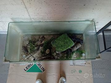 acquario 225 litri con accessori vari, misure 100 x 45 h 50, con supporto legno. no spedizione ritiro a Desio