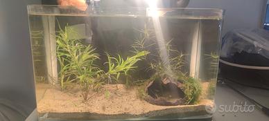 misure 35/20/22 per un volume di circa 15 litri,adatto per piccoli pesci o come caridinaio completo di luce,filtro e allestito con piante vere,posso lasciare anche qualche avanotto e della lumachine
