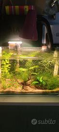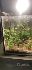 acquario mini di circa 13 litri adatto alla crescita degli avanotti ,per un beta, per delle caridine o solo per avere del verde sulla scrivania al posto della classica piante, misure 35x18 alto22 completo di: filtro illuminazione specifica per la crescita delle piante fondo fertile piante vere legnetti decorativi specifici per acquario al suo interno si trovano degli avanotti di Guppy e delle planorbarius che posso eventualmente lasciare o sostituire con qualche maschio adulto e già colorato solo ritiro a mano per ovvi motivi prezzo non trattabile