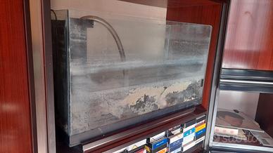 Acquario in ottime condizioni, ideale sia per allestimento d'acqua dolce/marina che per tartarughe d'acqua. Grazie alle sue dimensioni generose, offre un ottimo impatto estetico senza occupare eccessivo spazio.