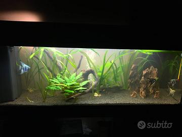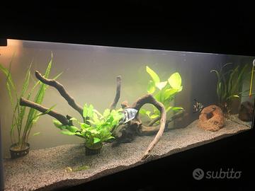 Acquario 100 lt con mobile originale. Attualmente c'è dentro SOLO ACQUA per evitare che il silicone si possa irrigidire Compreso nel prezzo lascio: -luci led per illuminazione -pompa per ricircolo d’acqua -riscaldatore -termometro con ventosa -legno decorativo (Amtra) -rocce -sabbia per fondale (Amtra) -sifone per pulizia substrato -tanica da 20 litri per effettuare cambi d’acqua Per qualsiasi info scrivimi pure RITIRO A DOMICILIO a Cassino d'Alberi Prezzo tratatbile