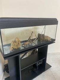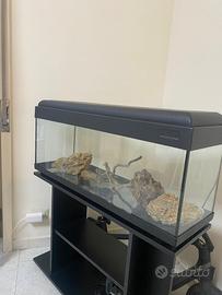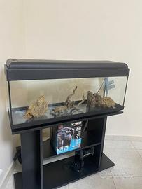 Vendo acquario da circa 100 litri completo di tutto, ideale sia per principianti che per appassionati. Acquario in vetro con coperchio e luce Mobile incluso (come da foto) Filtro esterno Sicce (modello Whale) Termostato + termometro interno Arredi inclusi: 2 pietre decorative + 1 legno naturale Accessori già pronti per l’avvio L’acquario è in buone condizioni, perfettamente funzionante. Vendo per inutilizzo. Prezzo poco trattabile
