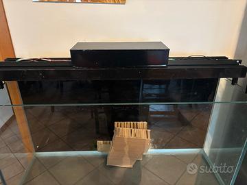 Acquario artigianale assemblato 8 anni fa da ditta specializzata di zona, mobile artigianale e plafoniera artigianale da sistemare( funziona e solo da sostituire un driver e un led che ve lo faccio io al momento dell’acquisto) misure 100x30x50 acquario e mobile. Vendo anche separati prezzo da concordare