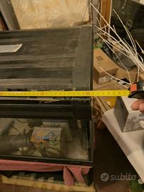 Acquario 110 litri completo di mobile di supporto nero, riscaldatore 150W e accessori (pompa, areatore).