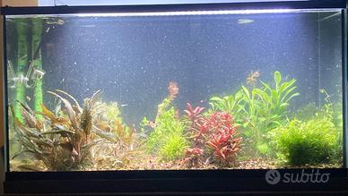 Acquario 120 lt del 2010 completo di mobile a due ante, filtro askoll pratiko 200 super silent, riscaldatore 150w, impianto co2, pesci e piante, plafoniera led + lampada led aggiuntiva