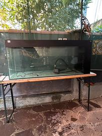 Vendo acquario completo di pompa interna, riscaldatore, termostato, luci al neon. Buone condizioni Misure 140x42 h60